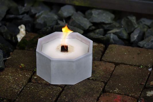 Beton Achteck Outdoor Kerze mit Dauerdocht lange Brenndauer mit Kerzenresten