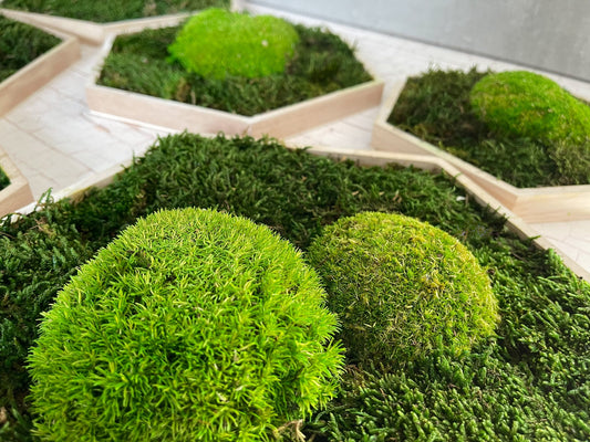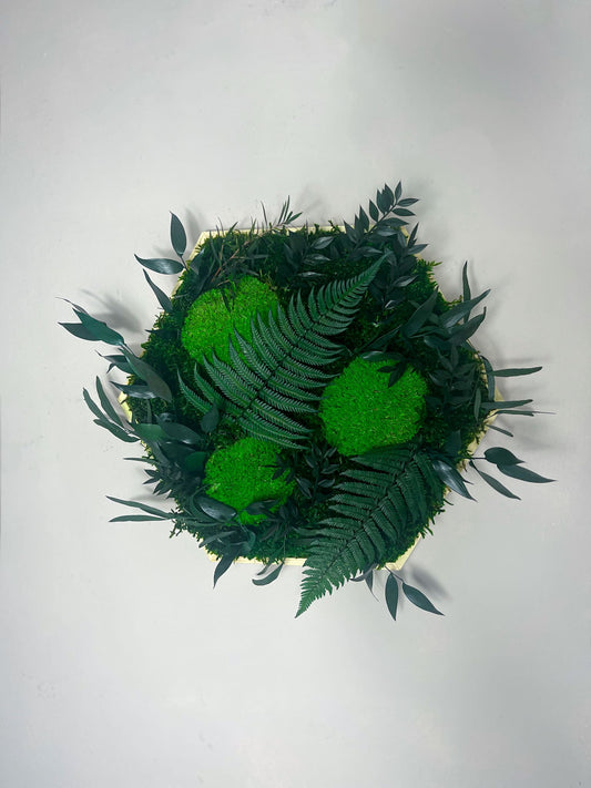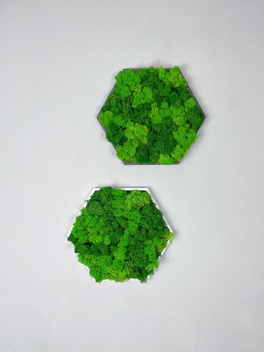 Moosbild Kombi Islandmoos & Ballenmoos Hexagon Holz Rahmen