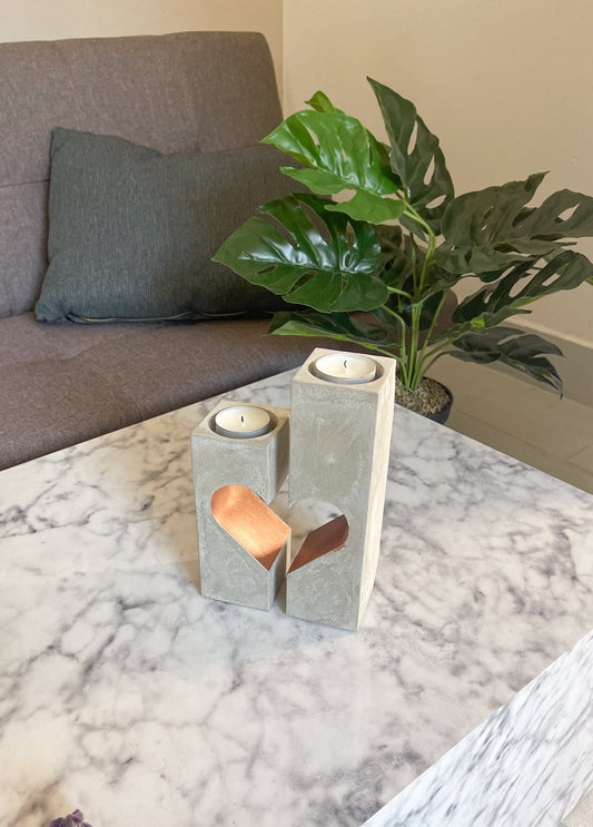 Beton Säule "Rosé Herz" Teelichthalter Herz Hausdeko