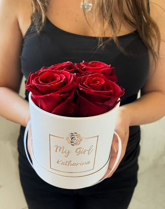 Eigene Personalisierte Rosenbox aus echten Infinity Rosen Größe M