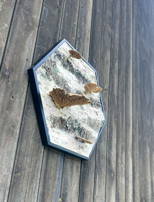 Birkenbild Birkenrinde mit Baumpilzen Hexagon Rahmen