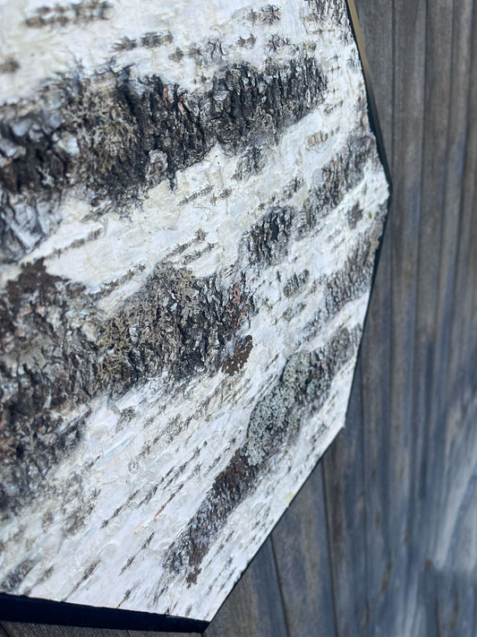 Birkenbild aus Birkenrinde in Hexagon, Sechseck Rahmen