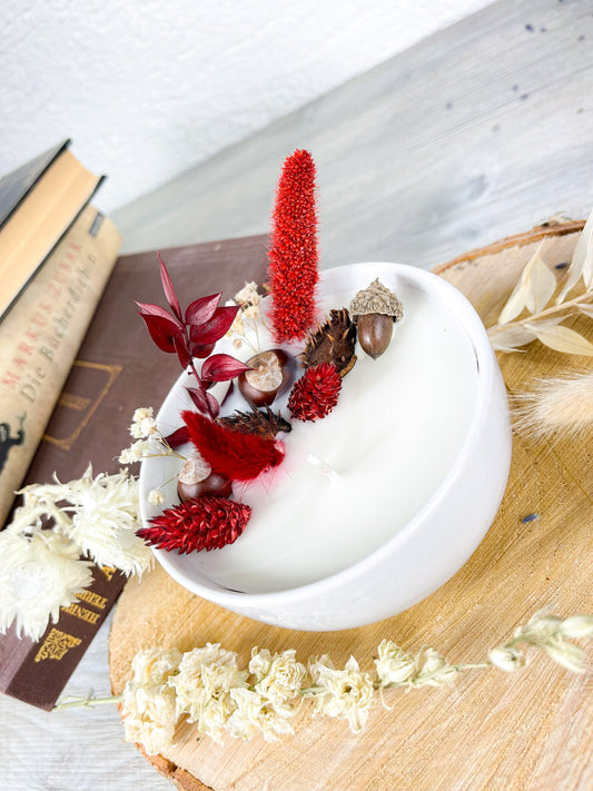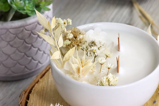 Duftschale "White Silk Soul" weiße Duftkerze mit Trockenblumen