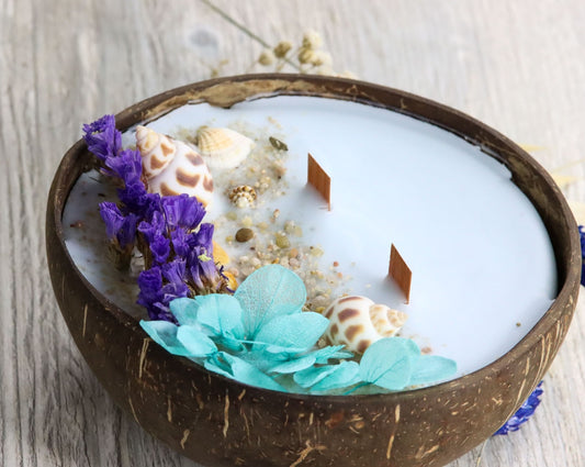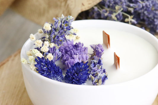 Duftschale "Lilac Soul" weiße Duftkerze mit Trockenblumen