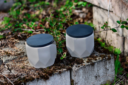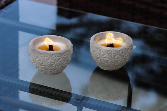 2er-Set Beton Outdoor Kerze "Geometria-Feuer" mit Dauerdocht lange Brenndauer mit Kerzenresten