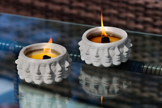 2er-Set Beton Outdoor Kerze "Azteken Feuer" mit Dauerdocht lange Brenndauer mit Kerzenresten