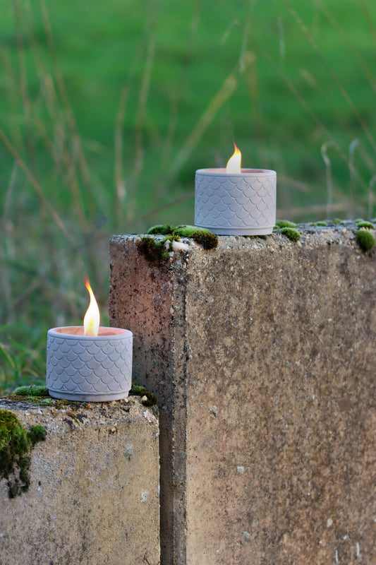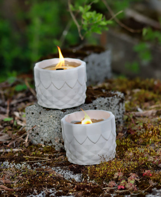 2er-Set Beton Outdoor Kerze "Schuppen" mit Dauerdocht lange Brenndauer mit Kerzenresten