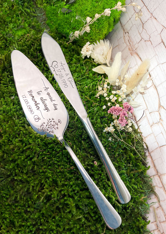 Tortenheber & Tortenmesser Set "Zeitlos" mit Gravur