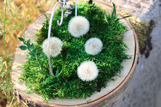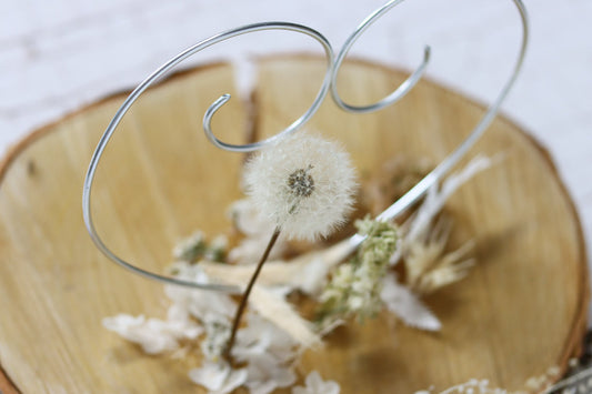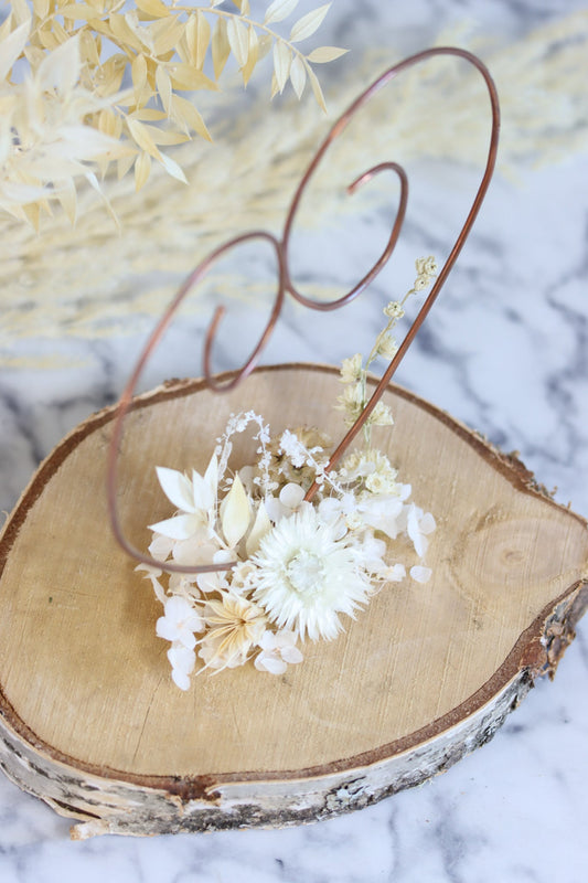 Ringhalter "Dandelion Wish" mit Birke Baumscheibe und Trockenblumen für Hochzeit oder Dekoration in weiß