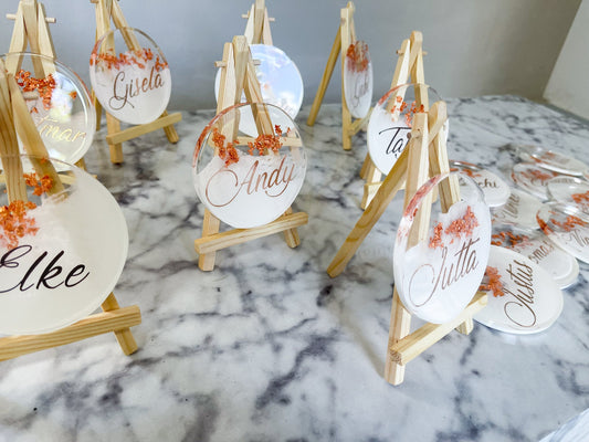 10er Set Tischaufsteller Name, Tischnummer Hochzeit