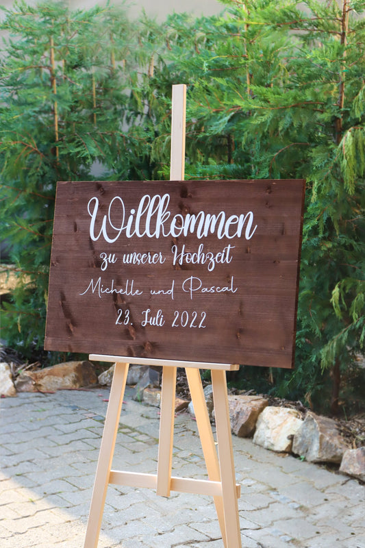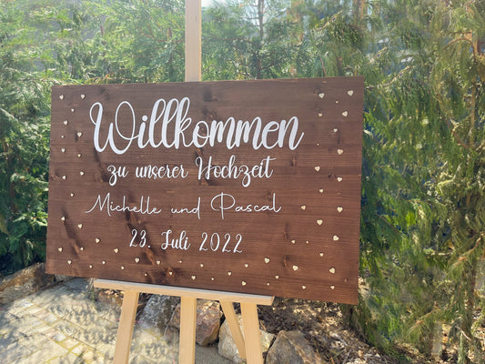 Hochzeit mit Herzen Schild aus Holz personalisiert