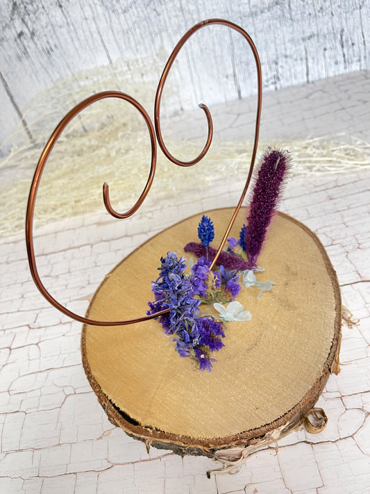 Ringhalter "Purple and Blue Love" mit Birke Baumscheibe und Trockenblumen für Hochzeit oder Dekoration