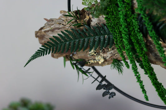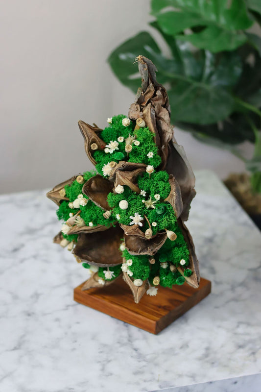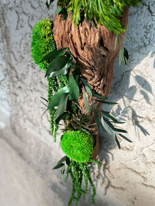 Moos Deko "Strelitzie" mit Holzgestell verholzter Fruchstamm