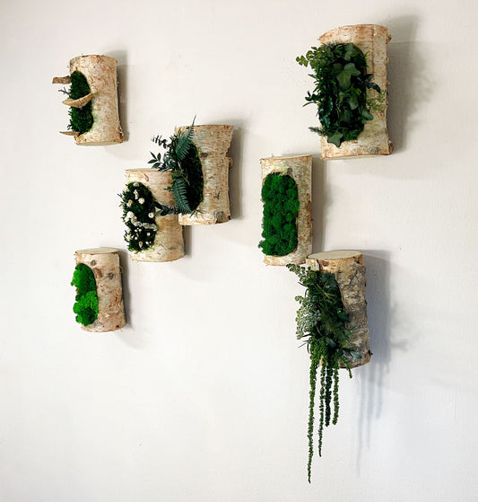 3er Set "Birkenmoos Stamm" Wanddeko