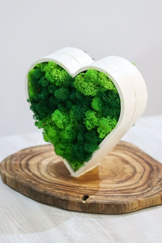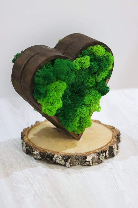 Moosherz mit Teak Baumscheibe Deko Herz mit Islandmoos