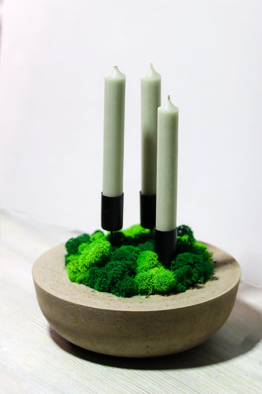 Mooskerze Kerzenhalter mit Betonschale Deko und Islandmoos