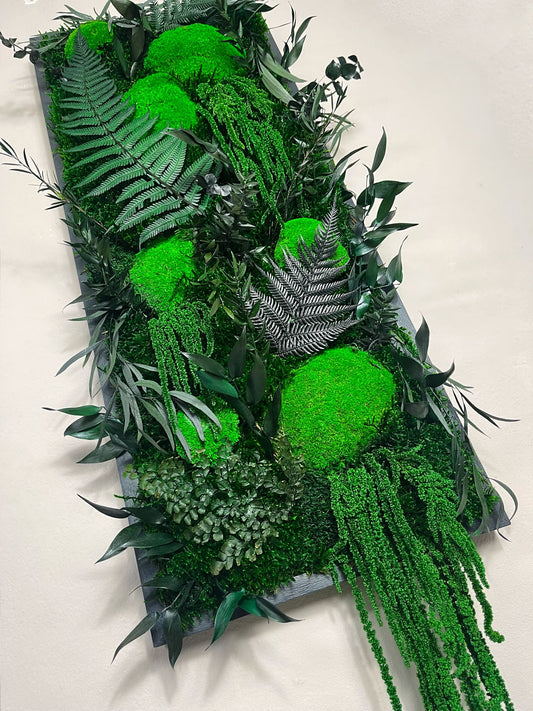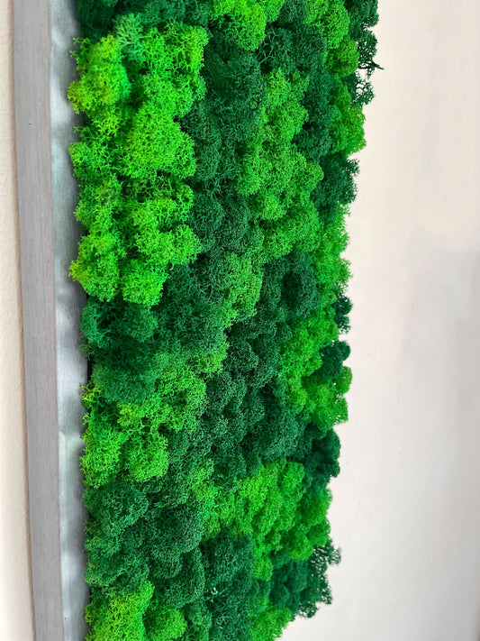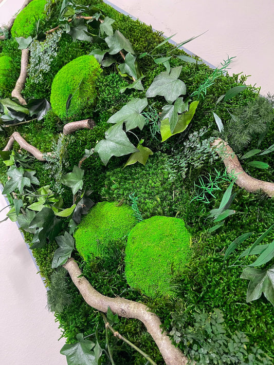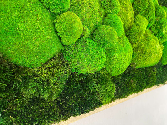 Unsere wunderschönen Moosbilder, im größeren Format und Ahorn Vollholz Rahmen in verschiedenen Designs und Variationen. Als Blickfang garantiert.