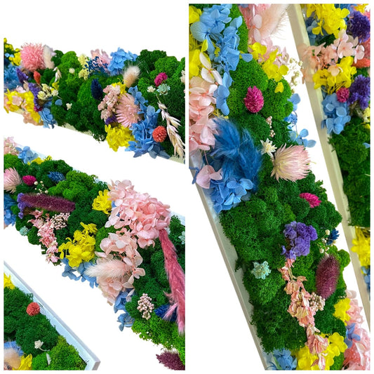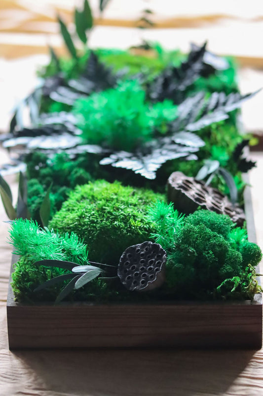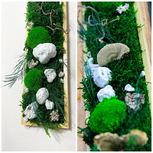 Langes Moosbild Waldmoos und Ballmoos Rechteck Holz Rahmen