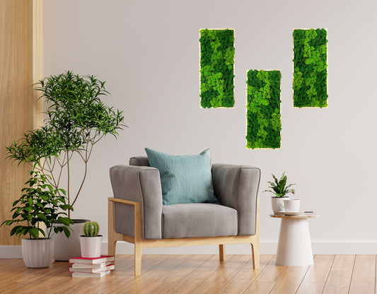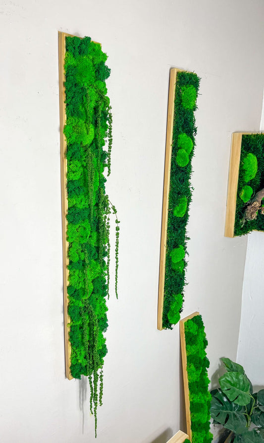 Langes Moosbild Island- & Ballmoos, Ranke Rechteck Holz Rahmen