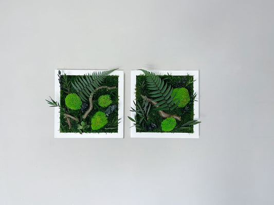 Dschungel Moosbild mit kleinem Ast Rahmen Farben