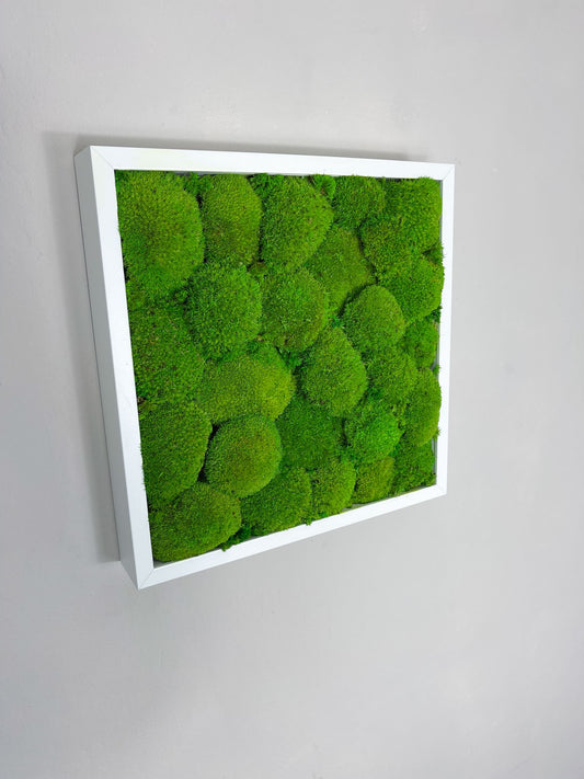 Moosbild Kugelmoos Hellgrün Rahmen Wandgarten Wanddeko Quadrat Sorte Ballenmoos
