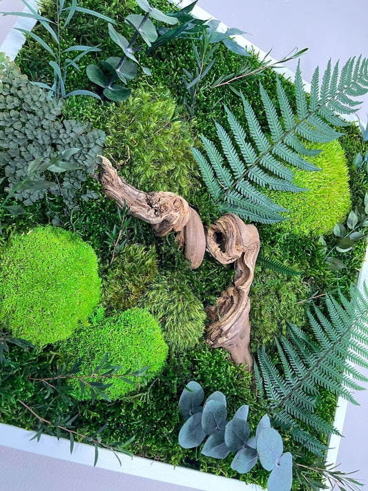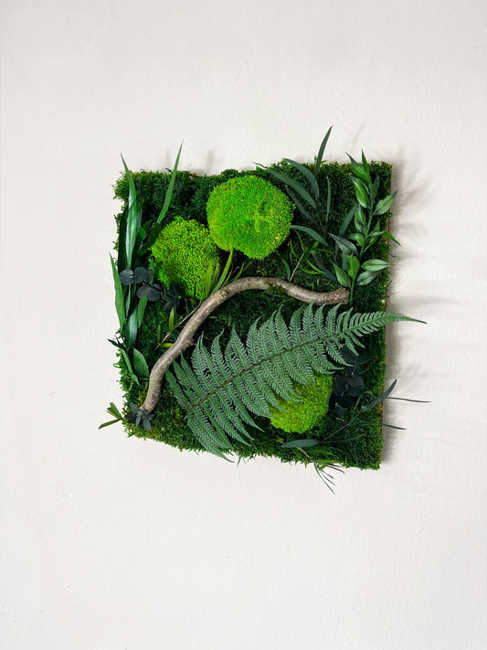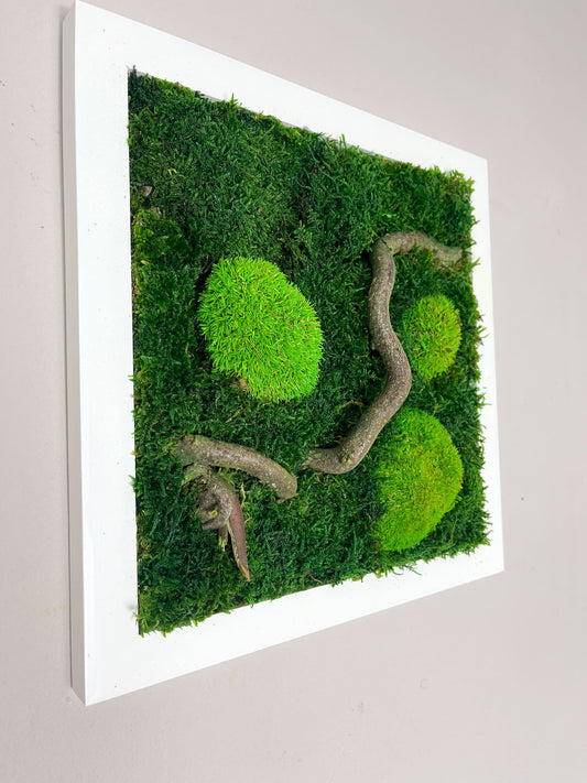 Moosbild Rahmen Wandgarten Wanddeko Quadrat Sorte Flachmoos & Ballenmoos