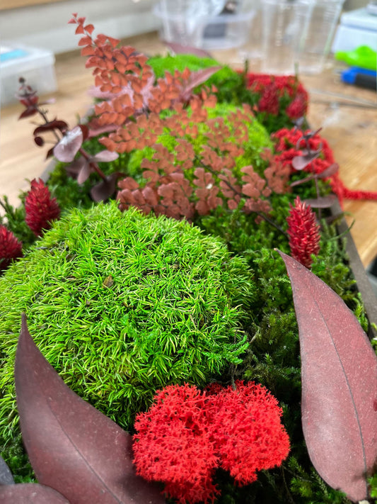 Moosbild Ranken Dschungel Rot Holz Rahmen Wandgarten Rechteck