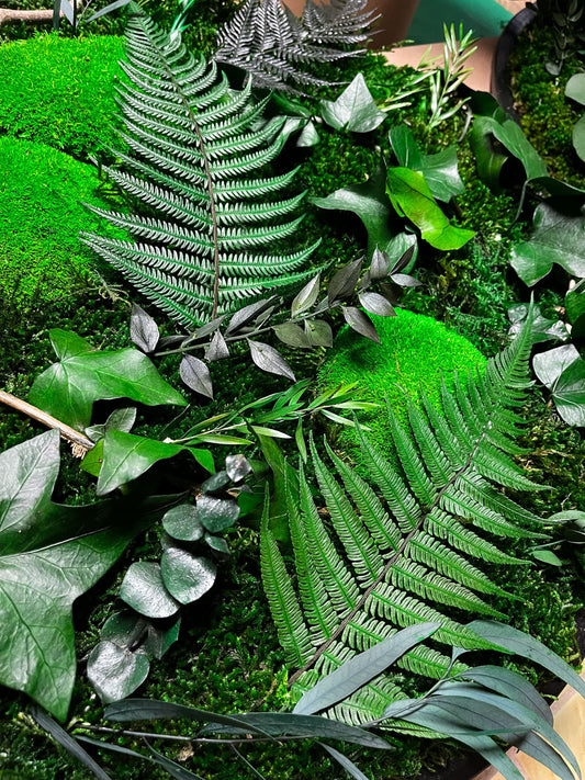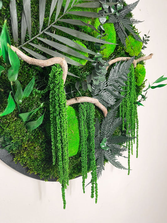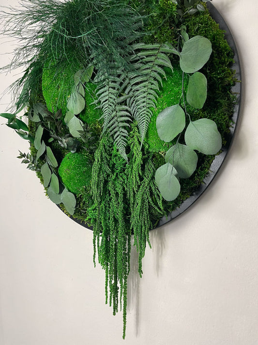 Großer Rankendschungel mit Eukalyptus & Baumfarn Moosbild Rund Design 004