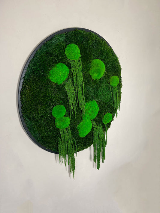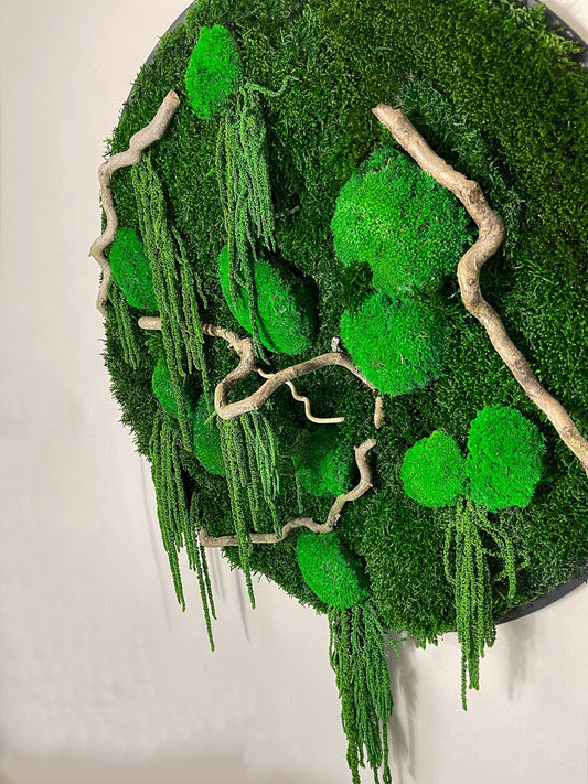 Großer Rankendschungel mit Dschungelblumen Moosbild Rund Design 005