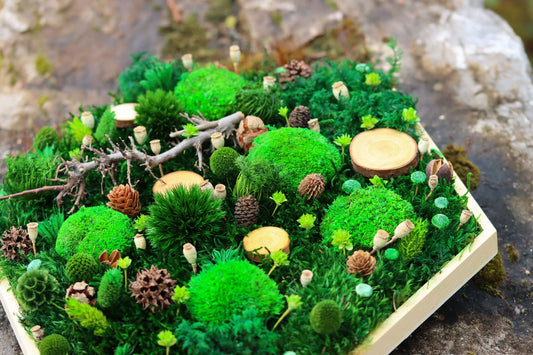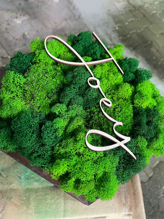 Moosbild Schriftzug Kombi Islandmoos & Ballenmoos Hexagon