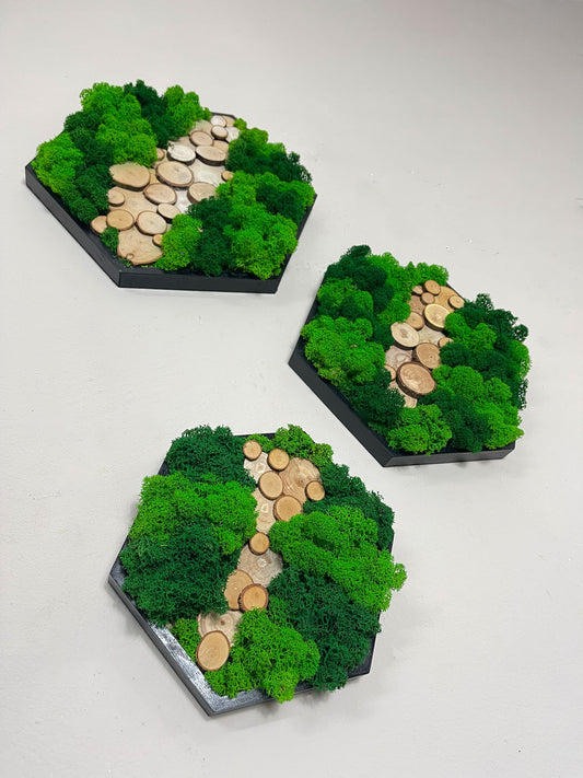 Moosbild "Oberon" Hexagon Sechseck