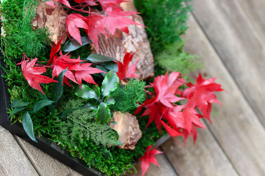 Moosbild "Ahornblatt Flammenwald" Hexagon, Sechseck