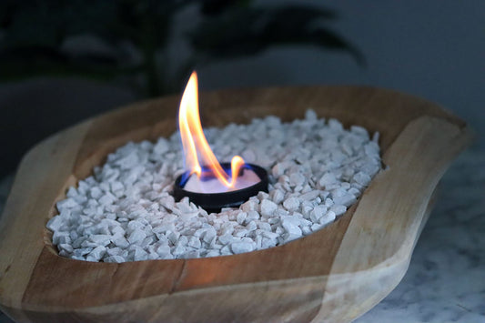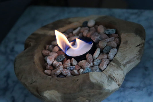 Teak Rustikal Schale S Ethanol Kerze In-/Outdoor