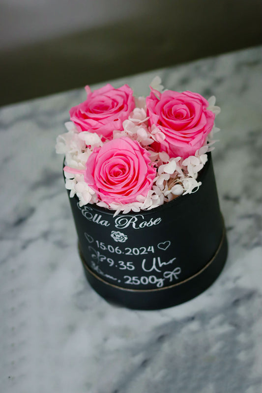 Personalisierte Blumenbox mit Rose Hortensienblüten