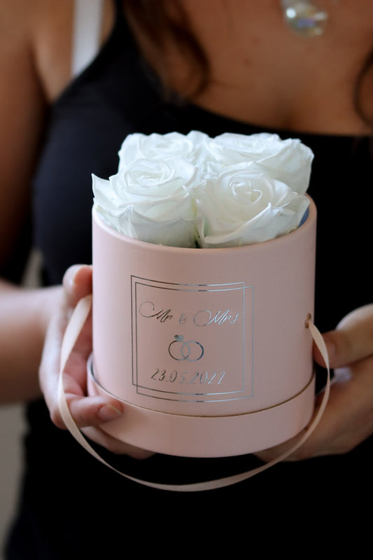 Personalisierung Design "Wedding Day" Rosenbox aus echten Infinity Rosen Größe S